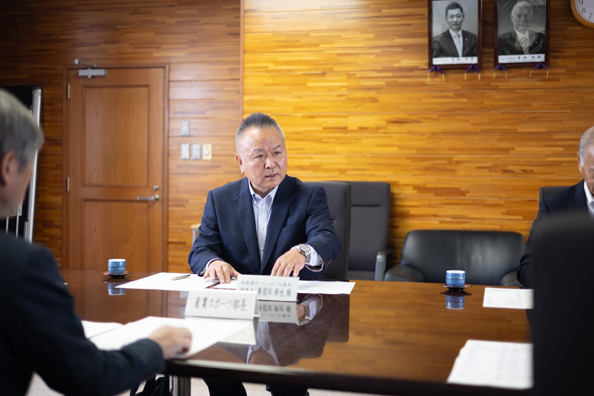市バレーボール協会の勝間田理事長からは、「前回大会が2017年。2021年の大会はコロナの影響で中止になったため、8年ぶりに第16回大会が開催される。10/31(金)は会場の準備を行い、11/1(土)~2(日)に試合を行う。グループリーグから決勝トーナメントを行い、順位を決める。御殿場市は各施設が充実しているので、参加者のみなさまにも是非楽しんでいただきたい。」と大会概要についてお話をいただきました。