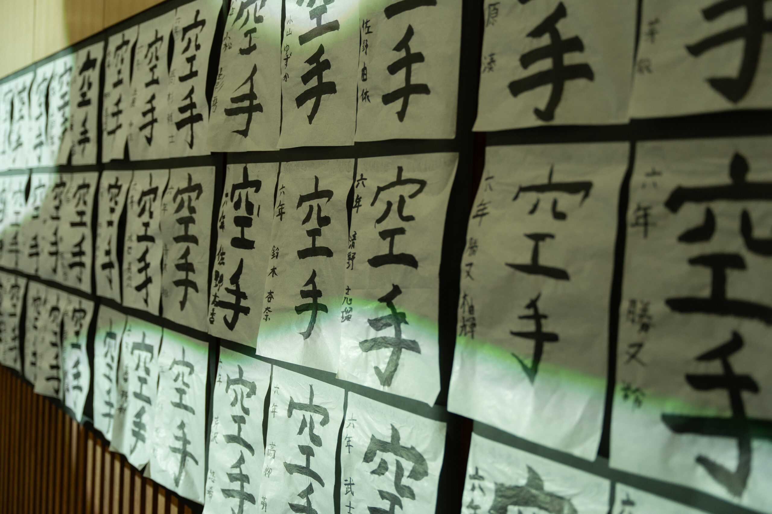 市内小学生が大会に向けて書き上げた“空手の書”を会場に展示します。素直な想いと表現力あふれる作品が会場中に溢れていますので、是非会場でご覧ください。