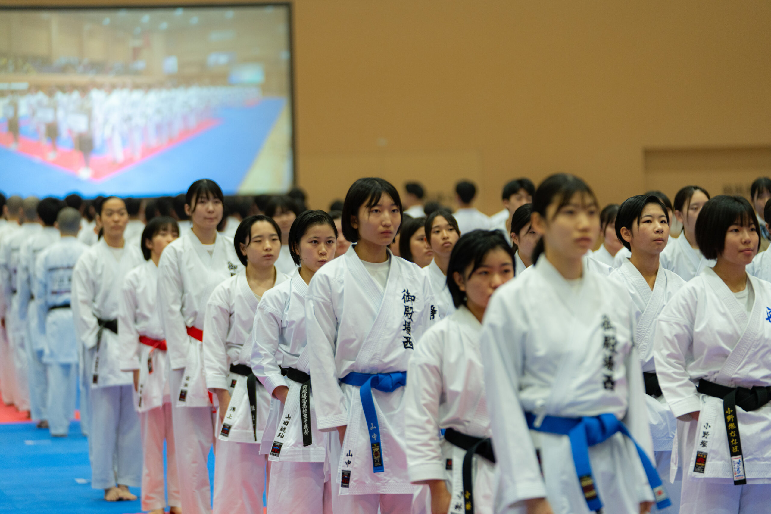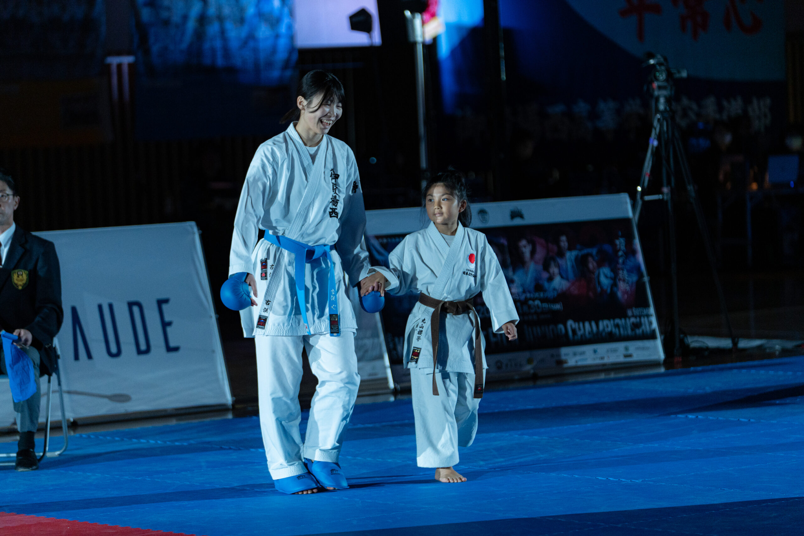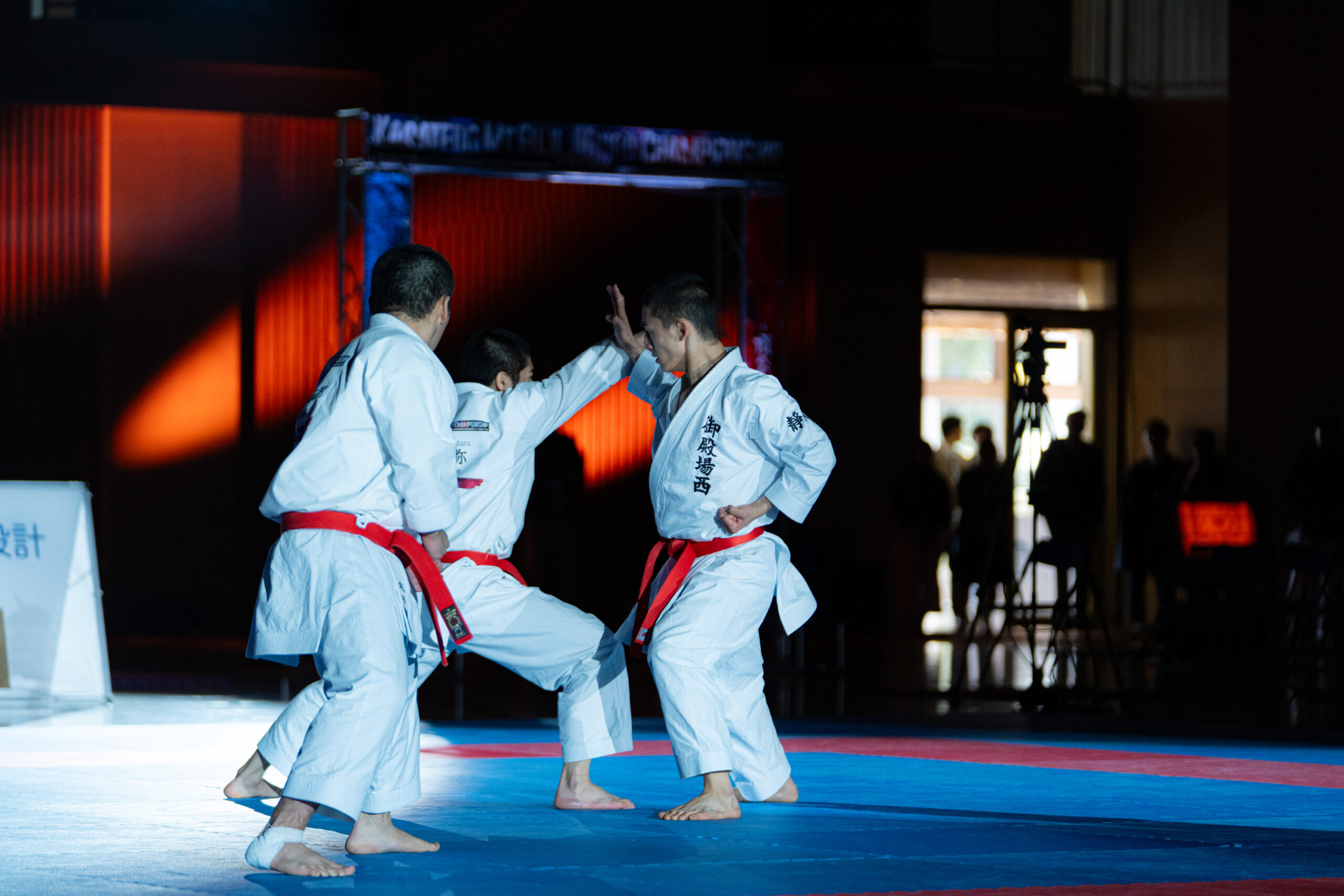 暗転した競技場をスポットライトが照らし、BGMに合わせて選手が入場。観客席からの拍手と歓声が重なり、試合前の緊張感は最高潮に。形の演武では、暗闇に浮かぶ選手の姿がより際立ち、美しさと迫力の両立した表現に観客が引き込まれました。