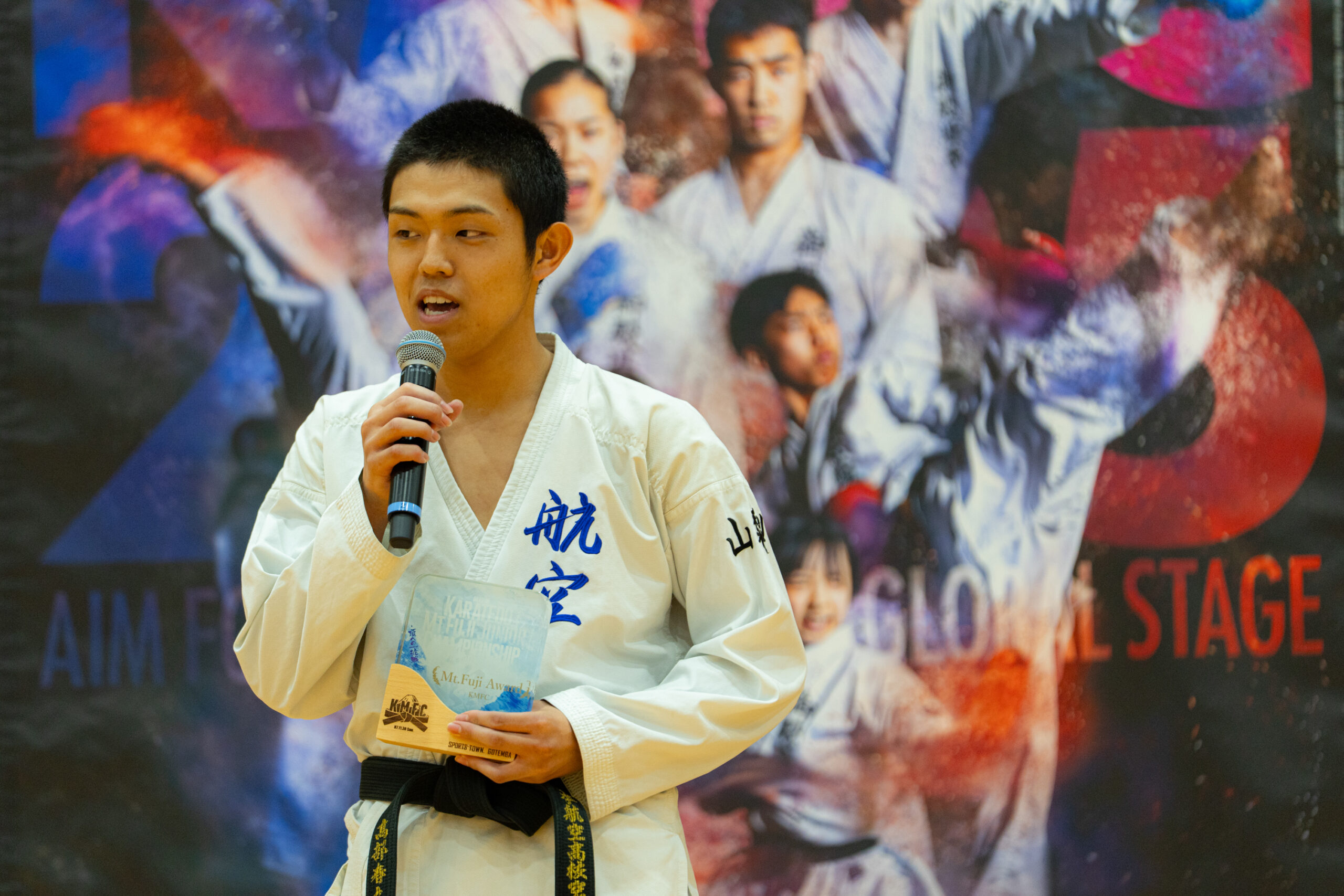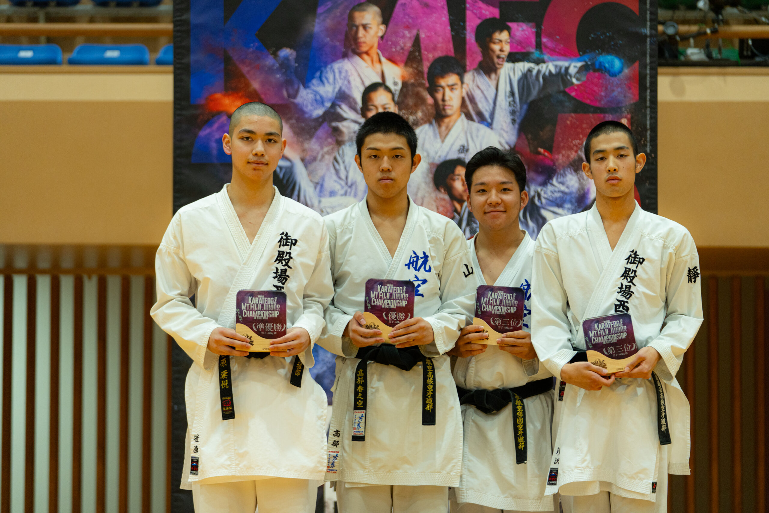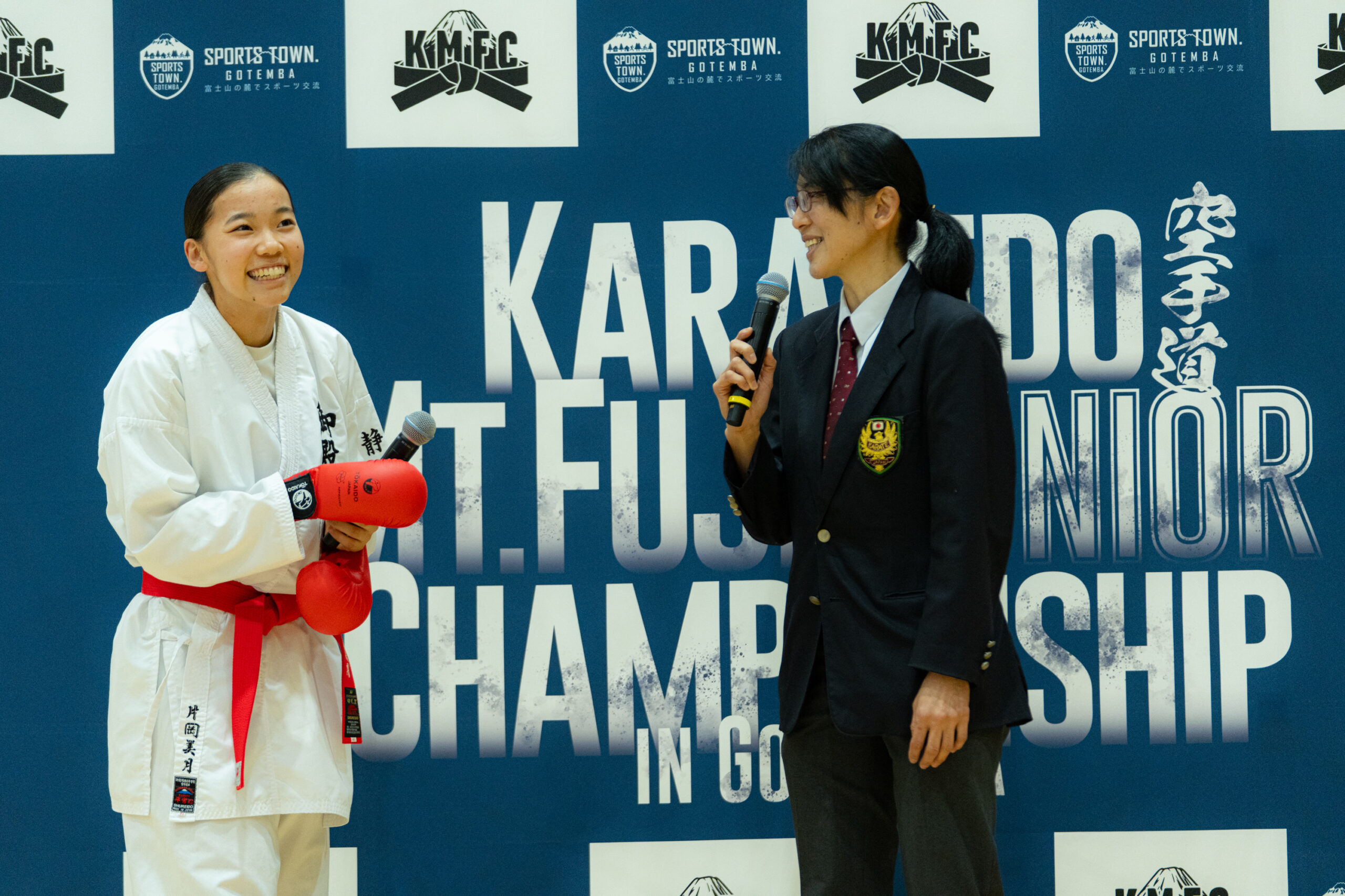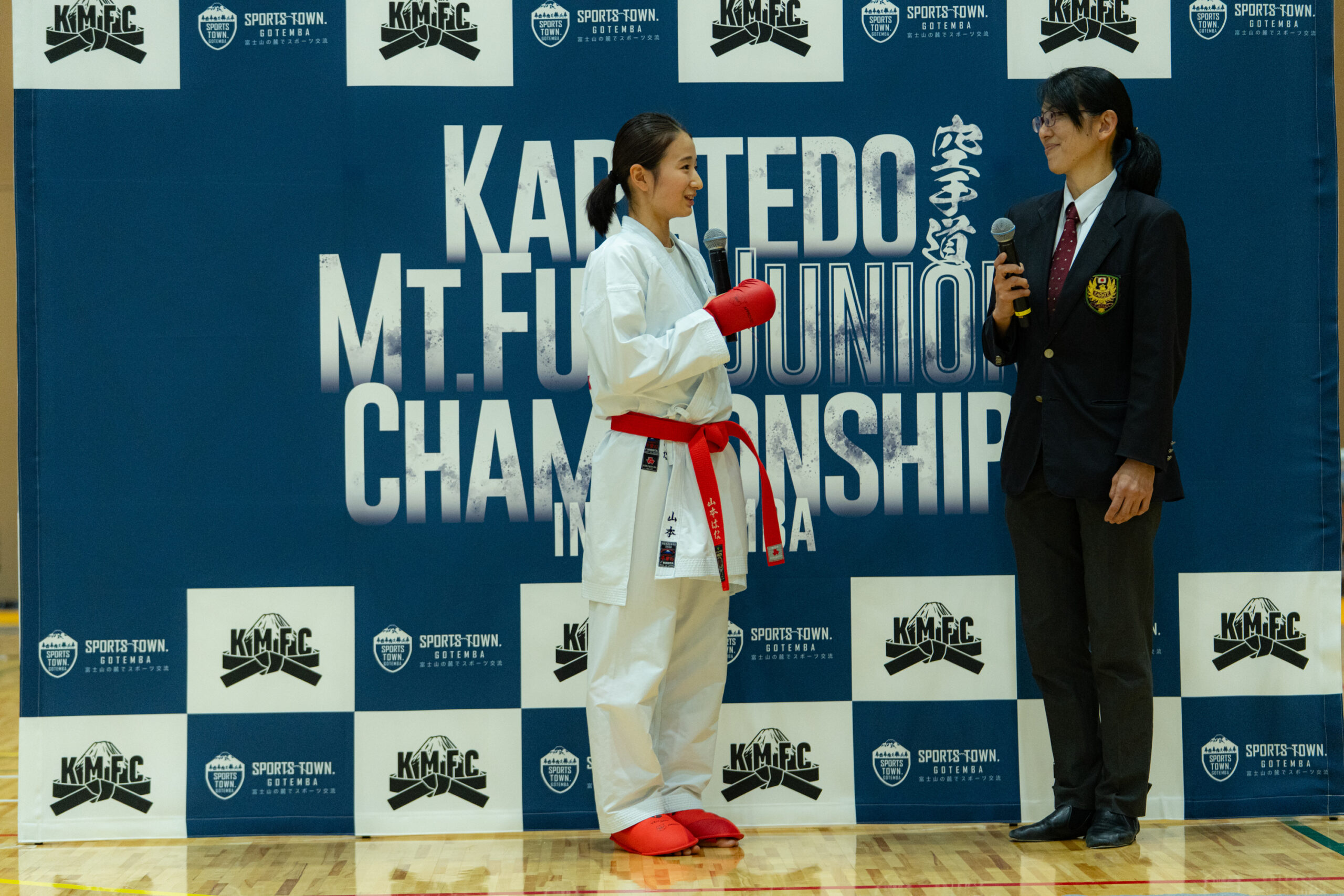 そのオリンピックレガシーを継承する大会として、令和7年11月30日(日)、御殿場市体育館にて「第四回 空手道 Karatedo Mt.Fuji Junior Championship in Gotemba(KMFC)」を開催しました。今年は出場校・選手数の増加、多数の協賛企業のご支援、優勝者インタビューの初導入など、これまでの三回を上回る進化を遂げました。