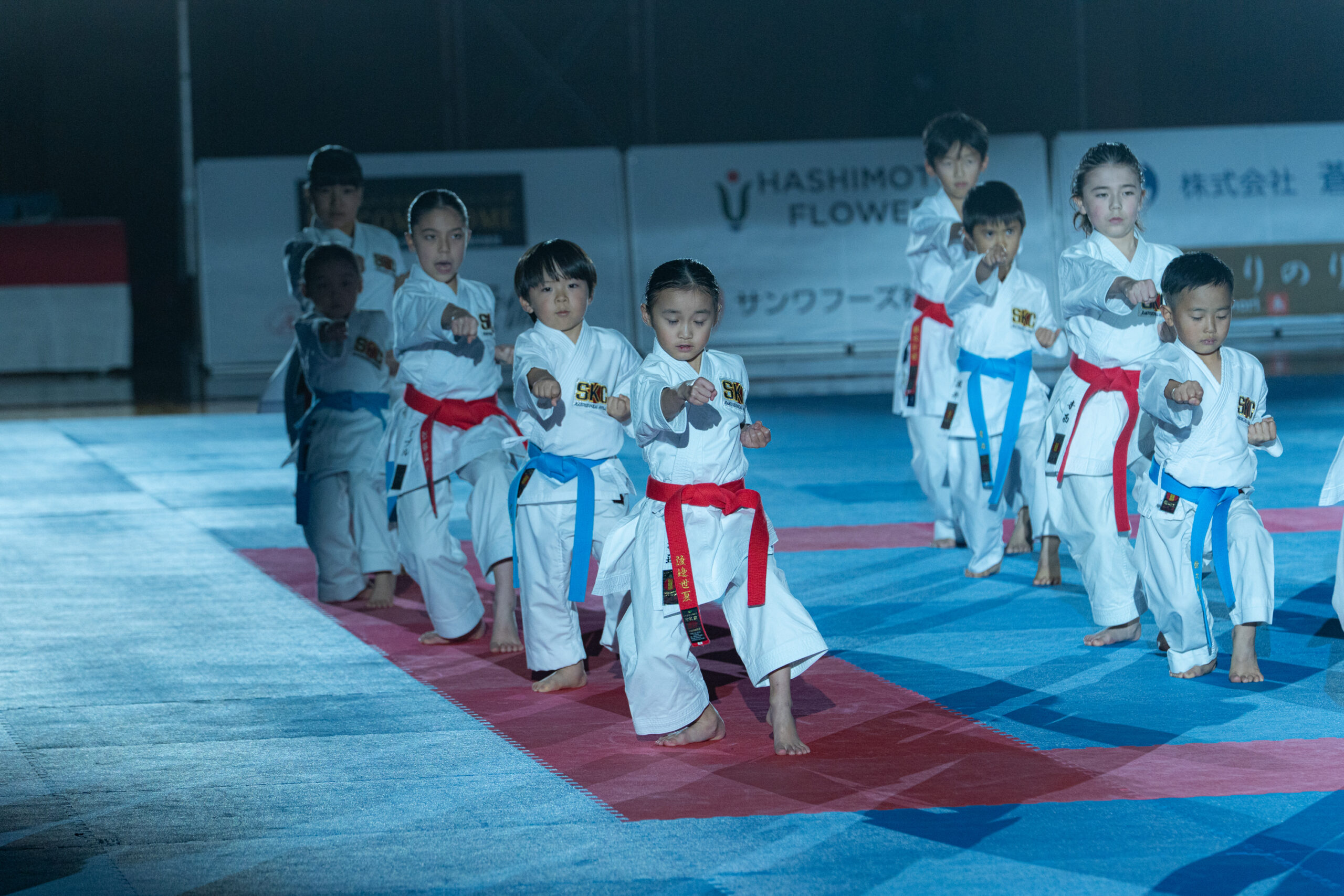 開会式前には「日本空手協会御殿場富士山支部」、決勝戦前には「泊親会御殿場SKC」の子どもたちが元気いっぱいの演武を披露。