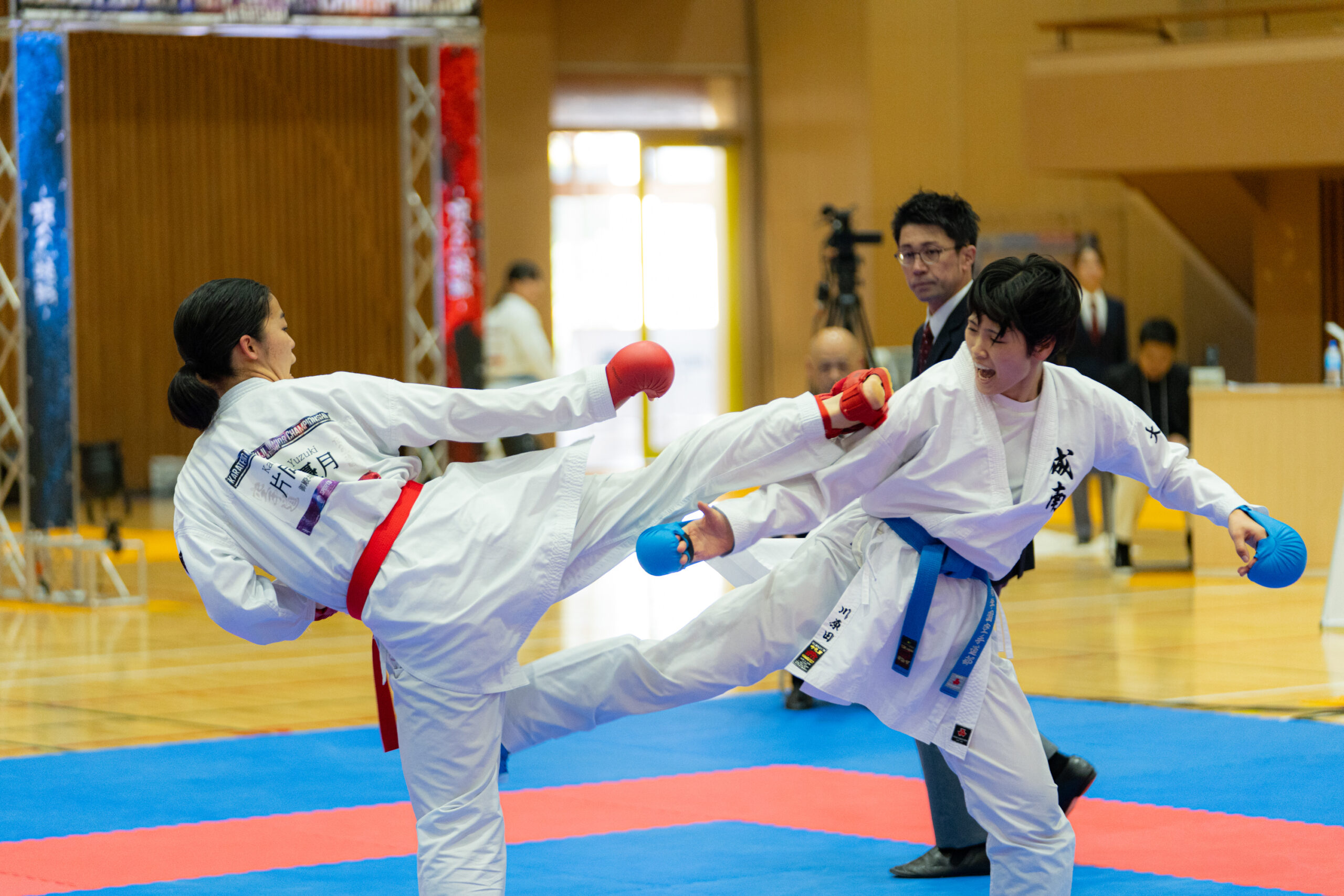 競技は世界ジュニア空手道選手権大会のルールを採用。メンホーなしの男女3階級の体重別で、予選はグループ総当たり戦、上位選手が準決勝へ進出する方式。実力者同士が予選から対戦するため初戦から白熱した戦いがみられ、決勝に近づくほど高い緊張感と技術のぶつかり合いが展開されました。