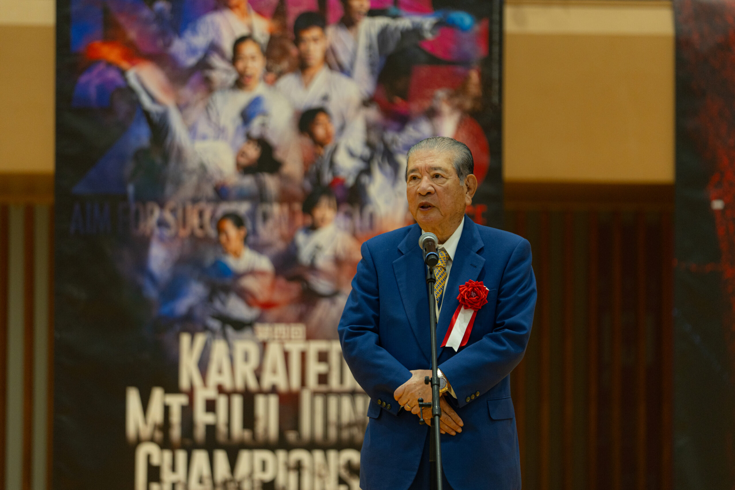 そのオリンピックレガシーを継承する大会として、令和7年11月30日(日)、御殿場市体育館にて「第四回 空手道 Karatedo Mt.Fuji Junior Championship in Gotemba(KMFC)」を開催しました。今年は出場校・選手数の増加、多数の協賛企業のご支援、優勝者インタビューの初導入など、これまでの三回を上回る進化を遂げました。
