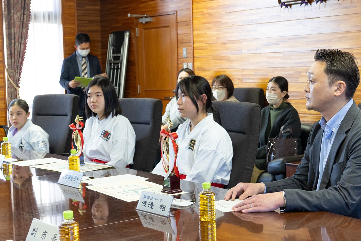 2月28日(土)から神奈川県で開催される全日本少年少女空手道選抜大会、及び3月28日(土)から京都府で開催される全国中学生空手道選抜大会への出場が決定した、泊親会御殿場SKCの皆様が市長を表敬訪問しました。