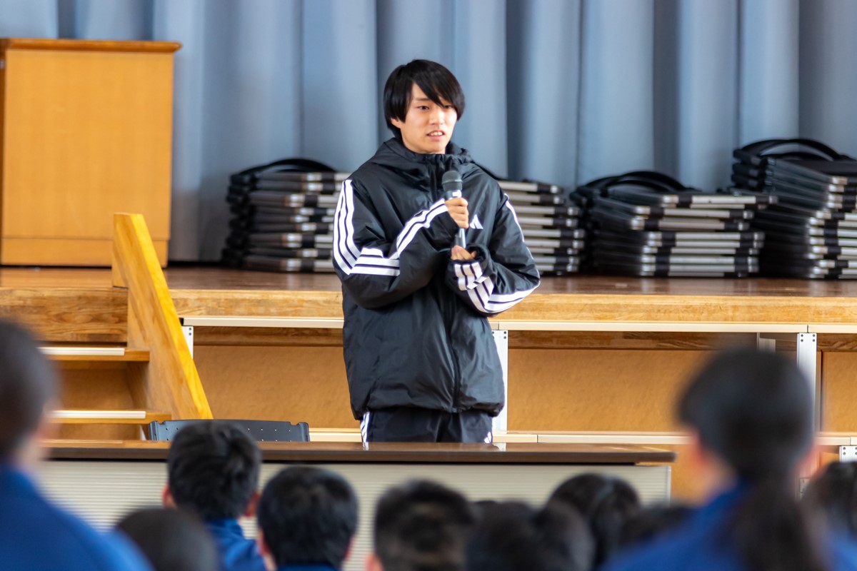 吉田選手からは、「自分は将来に悩んだ末、スポーツを選択肢として選んだ。何事も選択肢はひとつではないので、視野を広くしてみてほしい。」と生徒の皆さんに向けてお話がありました。