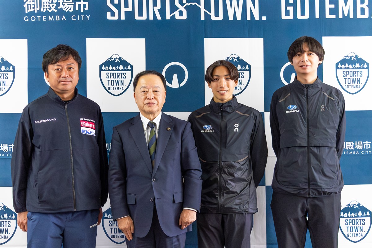 順天堂大学は、年6~9回、富士ざくらホテルを拠点に、御殿場市や小山町など富士山麓各地で合宿を行っています。市内では、遊RUNパーク玉穂や陸上競技場を利用させていただいており、日頃から大変お世話になっています。今回、その御礼も兼ねて表敬訪問をさせていただきました。