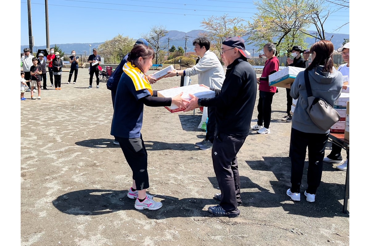 前日までの大雨とは打って変わって、少し汗ばむくらいの晴天の中で大会開催となりました。大会には小学生から80歳代の約100人の市民の方々が参加をし、年齢や性別関係なく、またチームメイトだけでなくチーム間での交流深める姿が見られました。ナイス!と掛け声が聞こえたり、笑い声が聞こえたりと、終始、参加者のみなさんが大会を楽しんでいる様子が見られました。